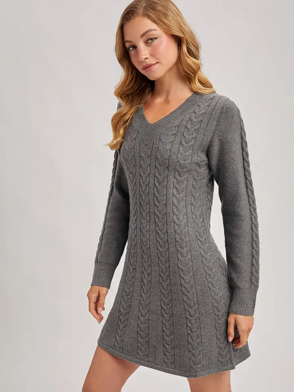 Victoria's Cable Knit V-Neck Sweater Mini Dress